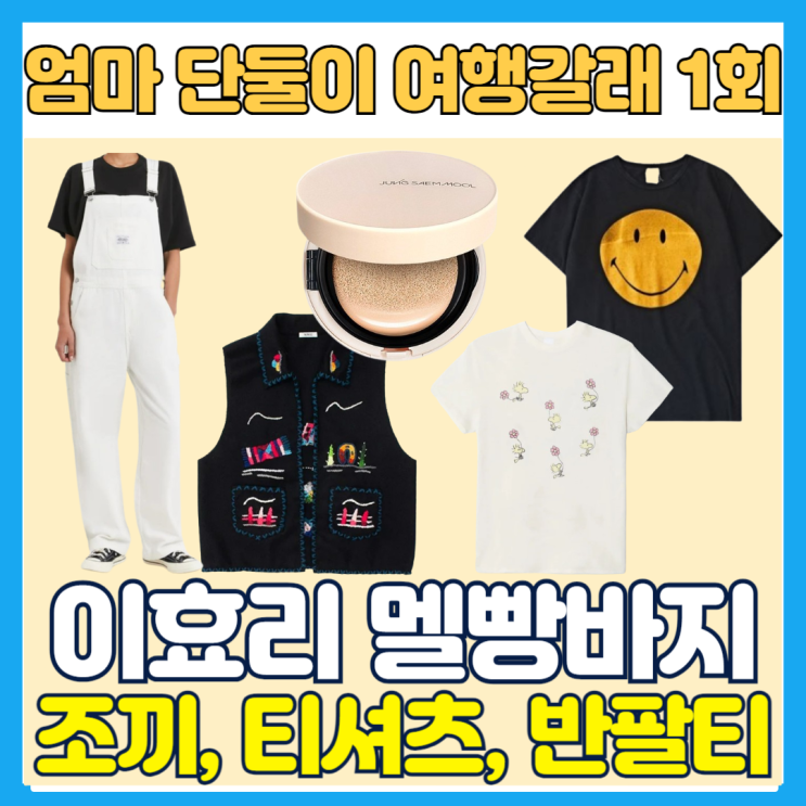 엄마 단둘이 여행갈래 이효리 팩트 쿠션 조끼 멜빵바지 오버롤 스마일 스누피 티셔츠 옷 패션