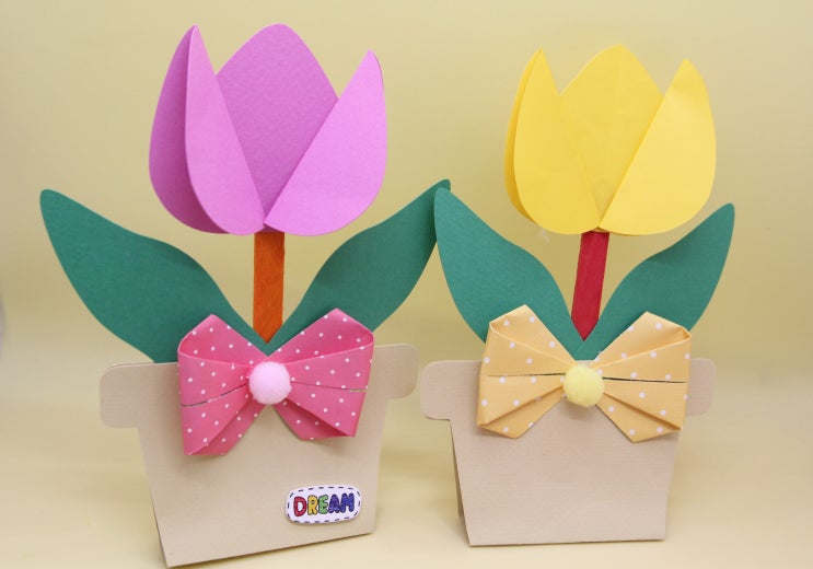 봄미술활동 쉬운 튤립접기 쉬운 화분만들기 봄 환경구성 봄 미술활동으로 간단한 종이접기와 오리기로 만들...