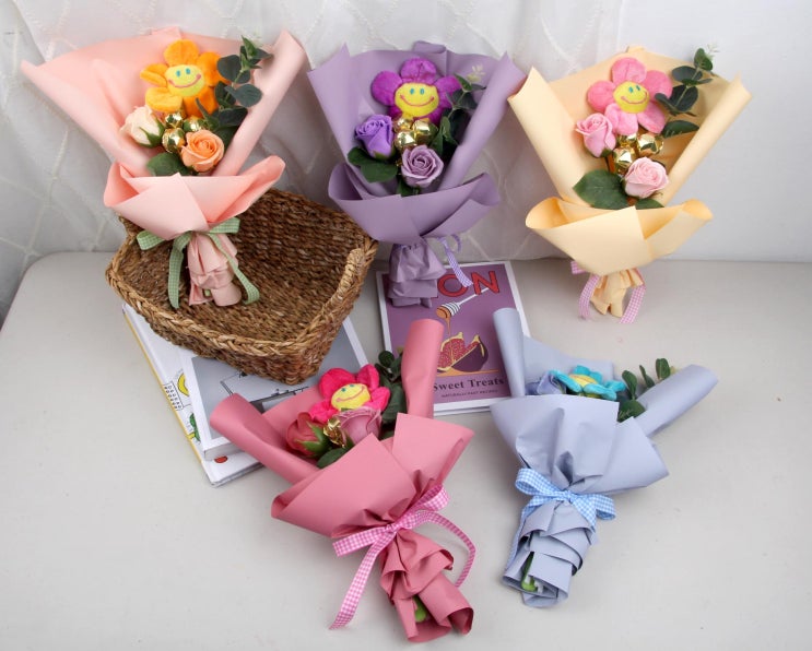 경희대에 소품샵 미스타이니예요~ 오랜만에 포스팅올려요~ 신상품 사탕꽃다발입니다. 스마일꽃이 가운데 자...