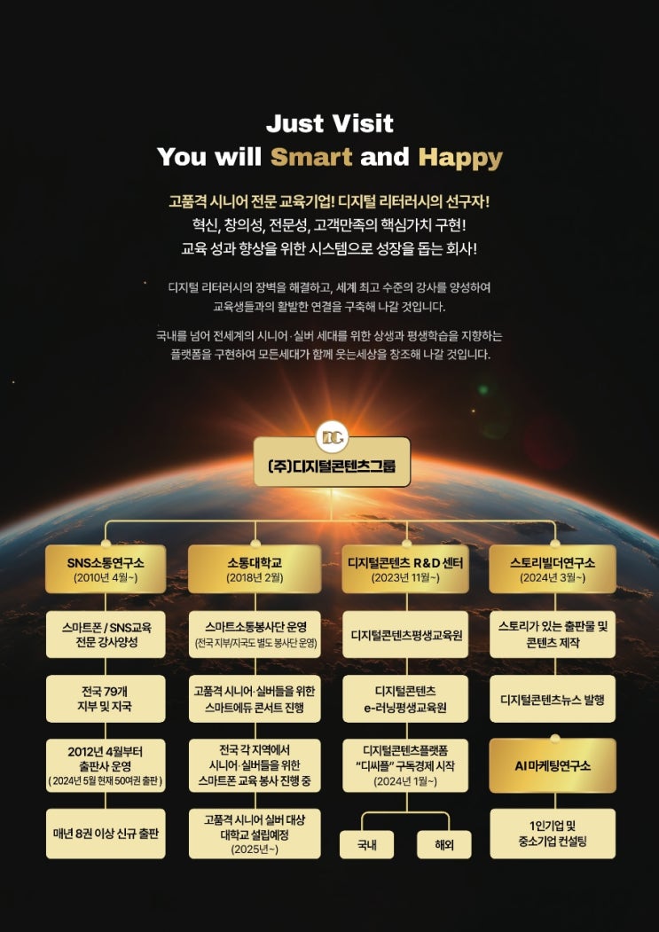 대한민국의 디지털 교육을 담당하는 (주)디지털콘텐츠 그룹 산하의 소통대학교는 시니어 여러분들의 디지털...