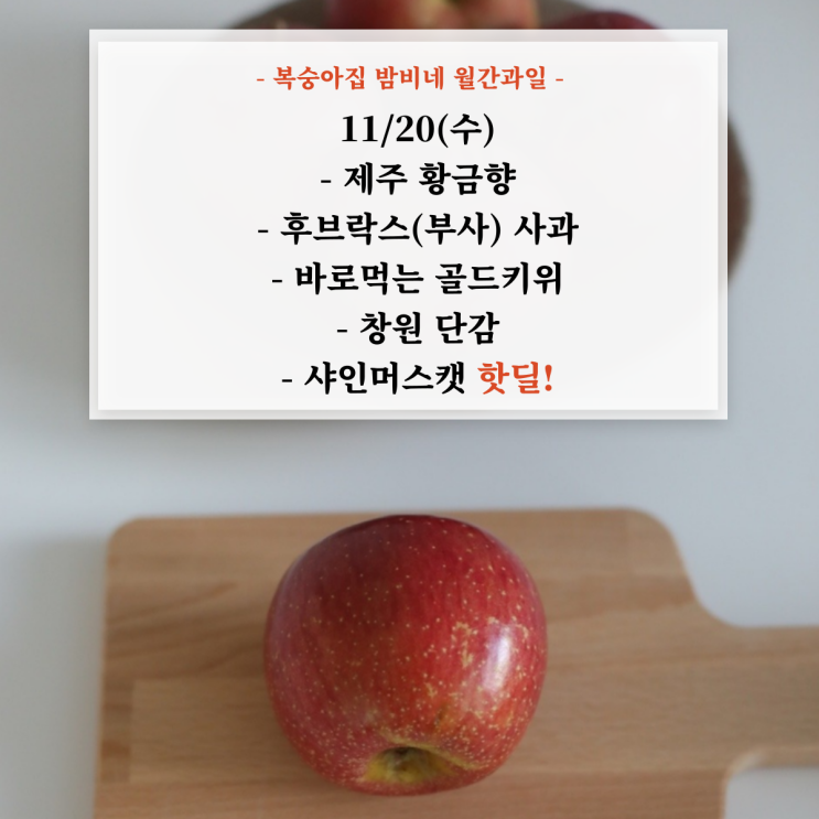 11/20(수) 샤인머스캣 핫딜, 제주 황금향, 후브락스 사과, 골드키위, 창원단감