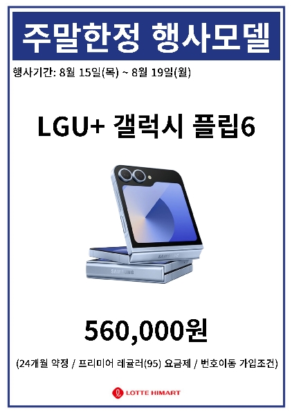 ?인천부천연수하이마트 8월3주차 휴대폰특가?폴더블6공시지원금상향!8.15(목)~8.19(월) 한정 휴대폰특가!Z폴더블6,S23FE,A35,A15휴대폰 특가!