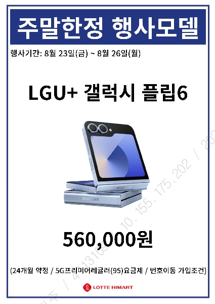?인천부천연수하이마트 8월2주차 휴대폰특가?폴더블6공시지원금상향!8.9(금)~8.12(월)주말한정 휴대폰특가!