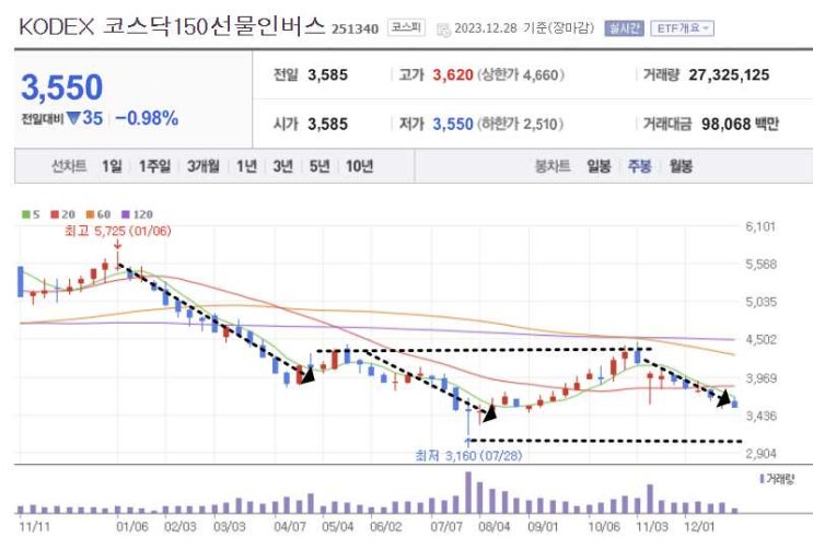 주린이 일기 : 코스닥 150 선물 인버스 분석 및 주가 전망
