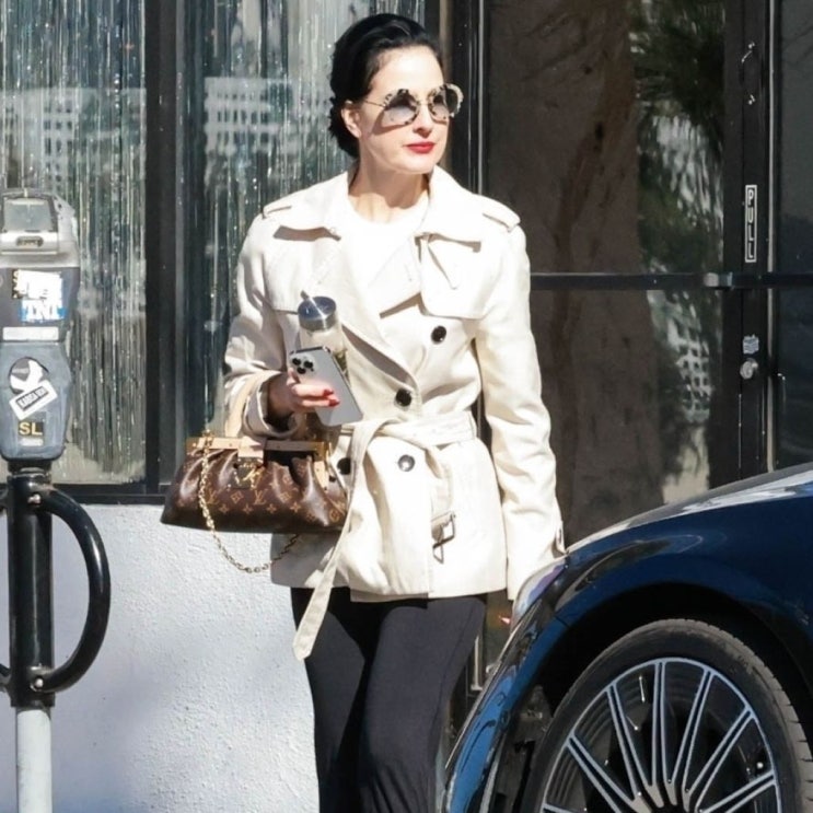 관리의 비결은 요가? 51세 디타 본 티즈 트렌치 코트 + 루이비통 클러치백 들고 외출