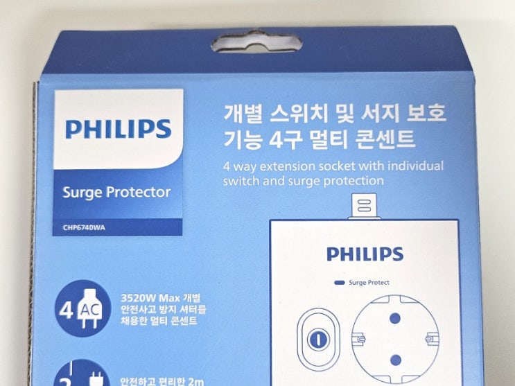 예쁜 멀티탭 필립스 서지보호 고용량 4구 멀티탭