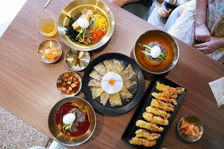 밀면을 재해석한 고급스러운 맛 육전과 새우전이 더해지니 좋다~!! 10월 초중순까지는 가을이 한쪽 발만 빼...