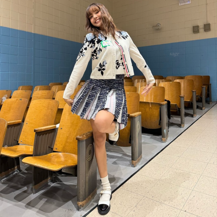 오늘자 리사의 인스타그램에 올라온 2가지 서로 다른 매력의 프레피룩 ! 리사는 플라워 패턴의 톰브라운 가...