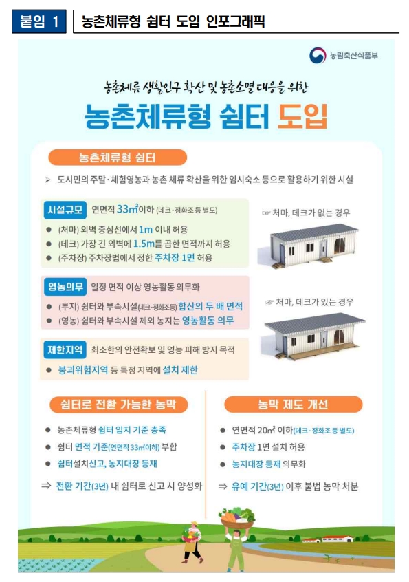 농촌인구 확산을 위한 농촌체류형 쉼터 (숙박가능) 도입!