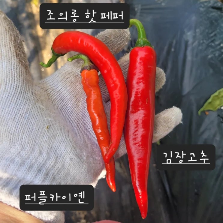 제가 텃밭에서 키우는 조의롱핫카이옌 스위트피통 두 종류의 외국 고추를 소개할까 합니다. #외국고추키우...