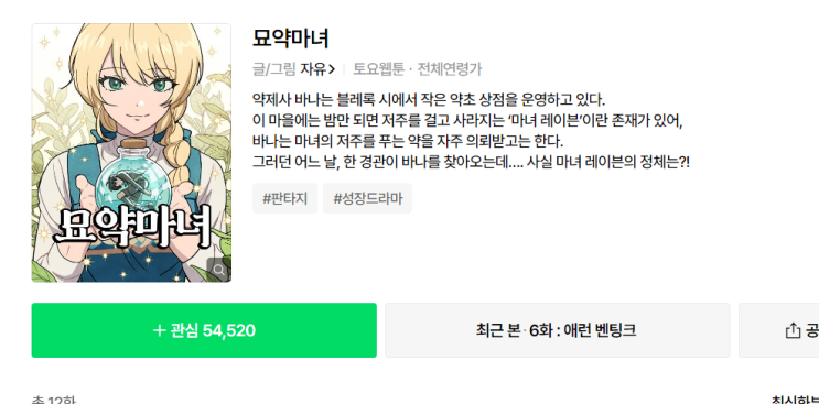 네이버 웹툰 추천 묘약마녀 리뷰, 내용정리