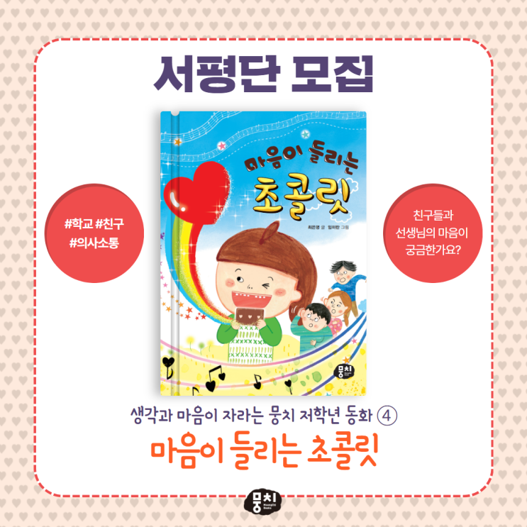 뭉치 저학년 동화 <마음이 들리는 초콜릿> 서평단 모집 (~1/21) #신간 #서평단모집 #마음이들리는초...