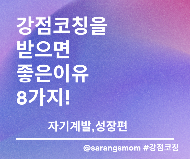 안녕하세요! 오늘은 강점 코칭을 받으면 좋은 이유에 대한 이야기를 해 드리려고 합니다. 자기 계발에 진심...