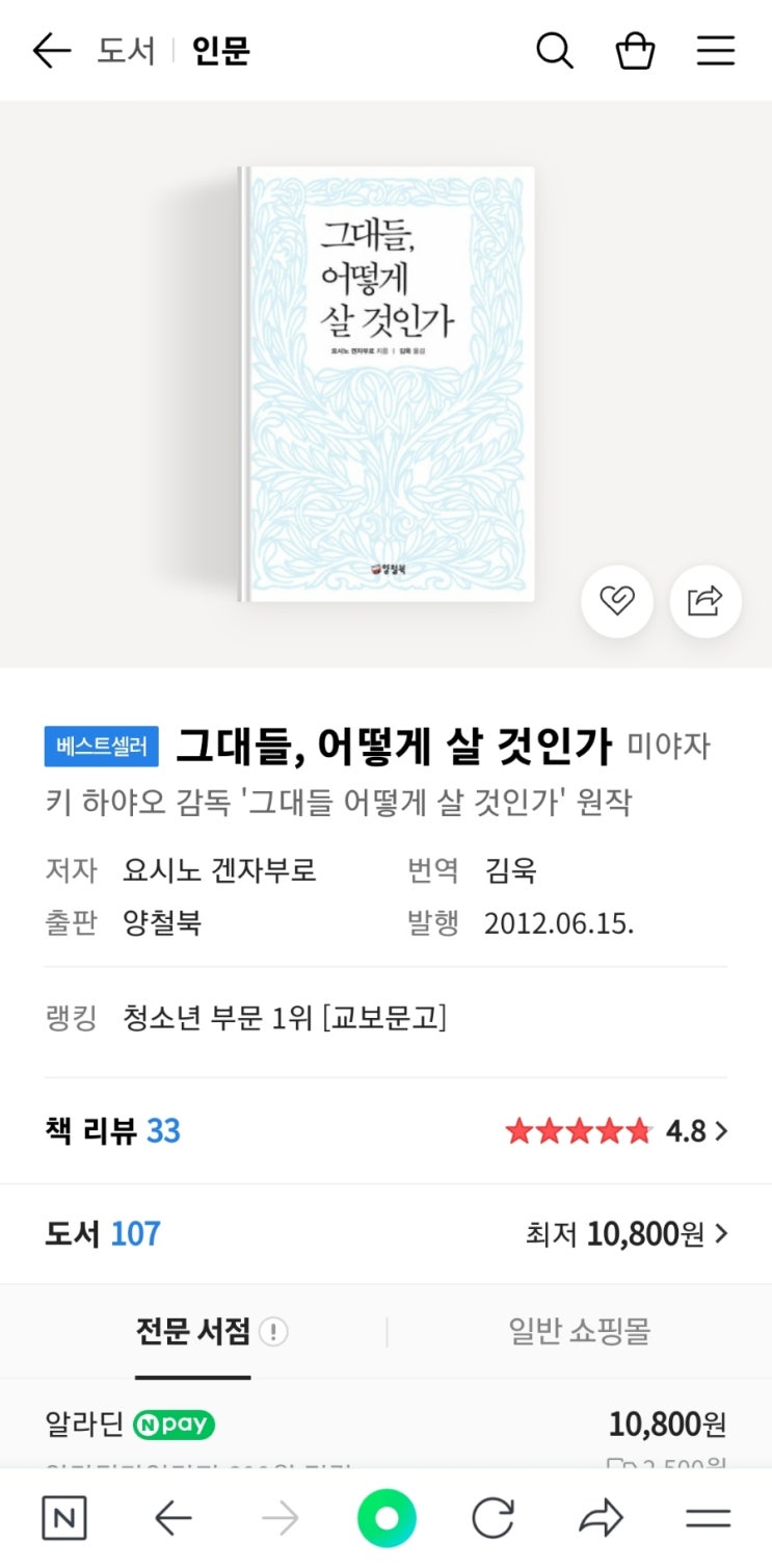 [책 리뷰] 인생 최고의 책_그대들, 어떻게 살 것인가.