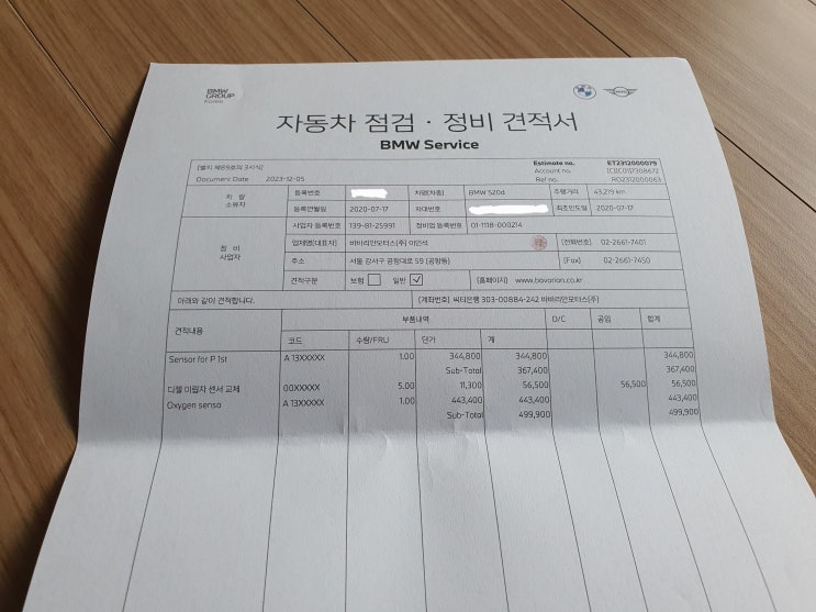 [G30 520d M] EGR 리콜, 디젤 미립자 센서, 람다 센서 리콜, 디퍼런셜 오일교환(feat. thx 강서 BMW 서비스센터)