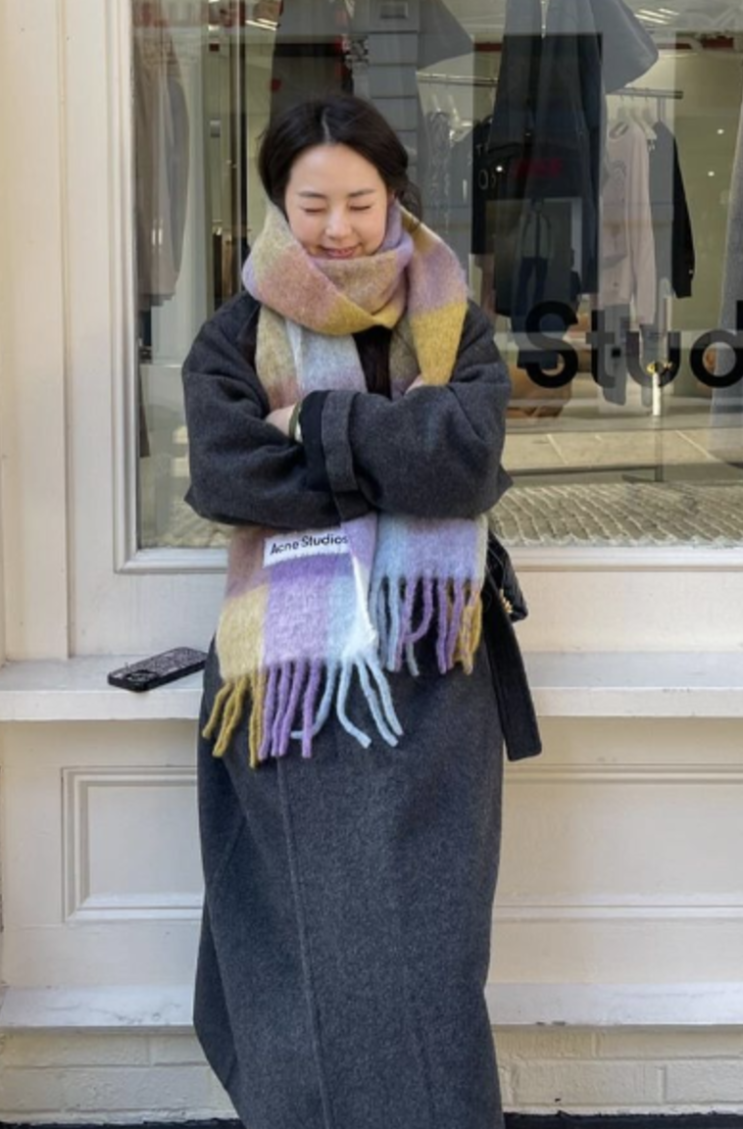 아크네 스튜디오 머플러 안소희 착용한 여자 겨울 체크목도리 정보는