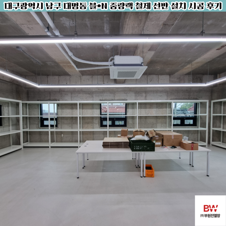 [부원진열장] 대구광역시 남구 대명동 블*N 사무실 진열장 창고 중량랙 철제 선반 설치 시공 후기