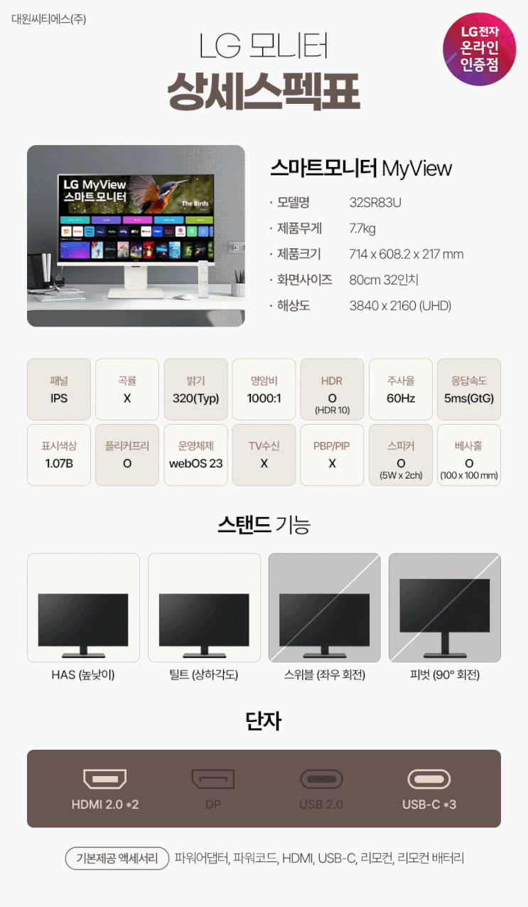 LG 스마트모니터 MyView 32SR83U 스펙 안내