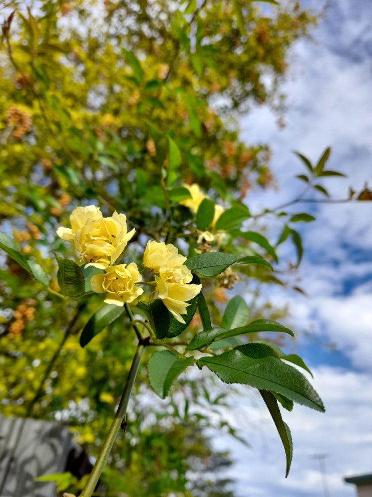 심은 지 2년이 다 되어 올해에 겨우 꽃을 보는 목향 장미입니다. 겨우 이 꽃 송이가 전부입니다 풍성한 꽃...