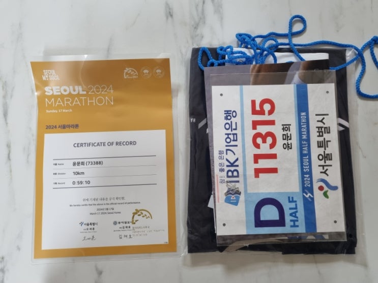 서울하프마라톤 배번표가 도착했습니다! 공교롭게도 3월 서울마라톤 기록증도 같은 날 왔네요. 배번표, 기...