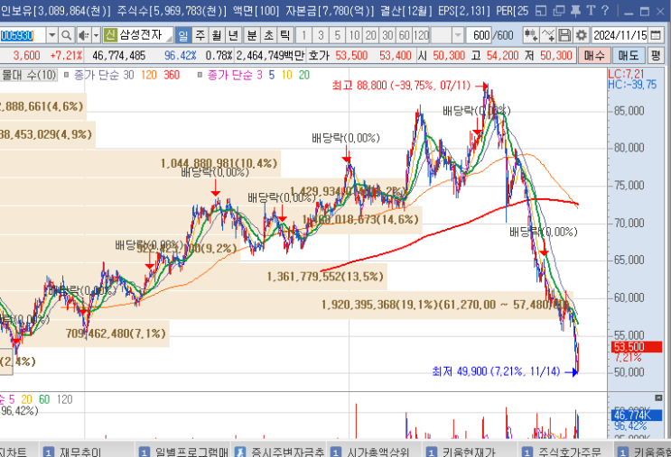 오전에.. 간보지말고 차트 정배열일때 그냥 확들어갈걸.. 이걸 사팔 사팔 하고 앉아있다.. ( 신규주 무서움...