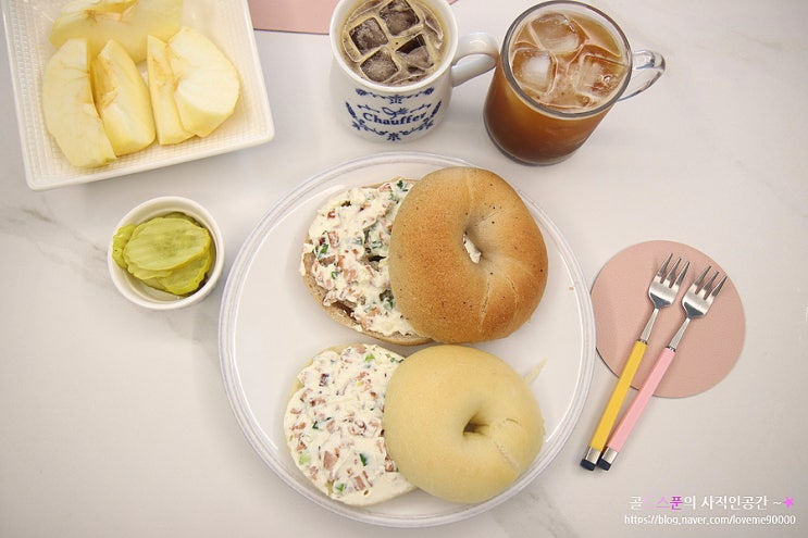 간단한 홈브런치 메뉴 크림치즈요리 베이글 대파크림치즈 만들기