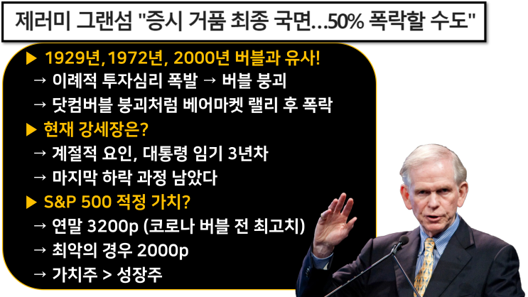 월가의 전설적 인물인 제레미 그렌섬, 올해 증시는 베어마켓 랠리 후 -50% 폭락이 올 것이란 경고를 하고 ...