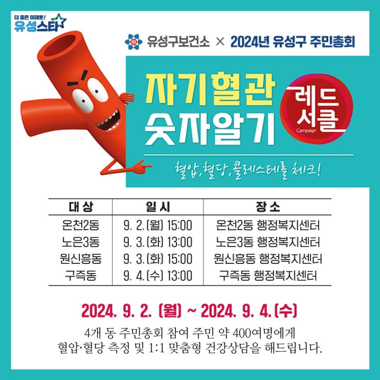 혈압, 혈당, 콜레스테롤 췍!!! 유성구가 심뇌혈관질환 예방관리 주간을 맞아 '자기혈관 숫자알기 - 레...