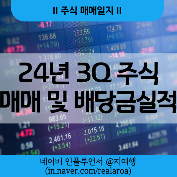 주식 매매일지 주식 배당금 실적 24년 3분기 투자 성과는? 지난 7월에 상반기를 묶어서 매매일지를 한번 정...