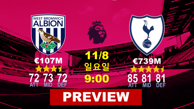 [EPL8R] 웨스트브롬 v 토트넘, 흥민이가 아직 골맛을 보지 못한 팀