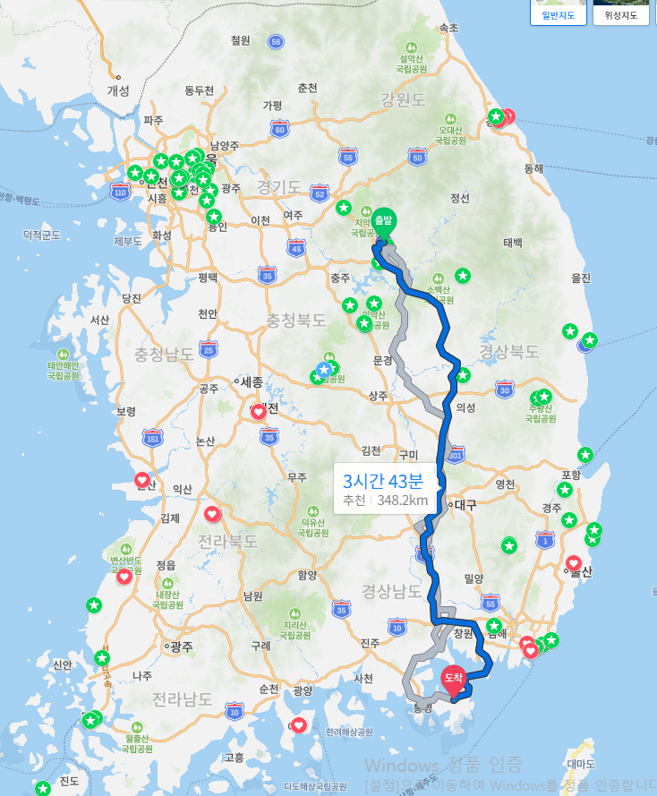 제천-거제도 최단시간 가는 방법, 운전/대중교통편(제천-동대구-거제도고현)