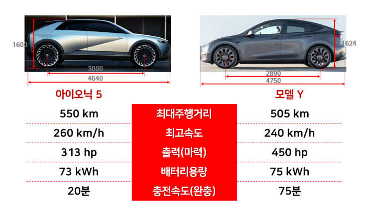 현대 아이오닉5 v 테슬라 모델Y 비교