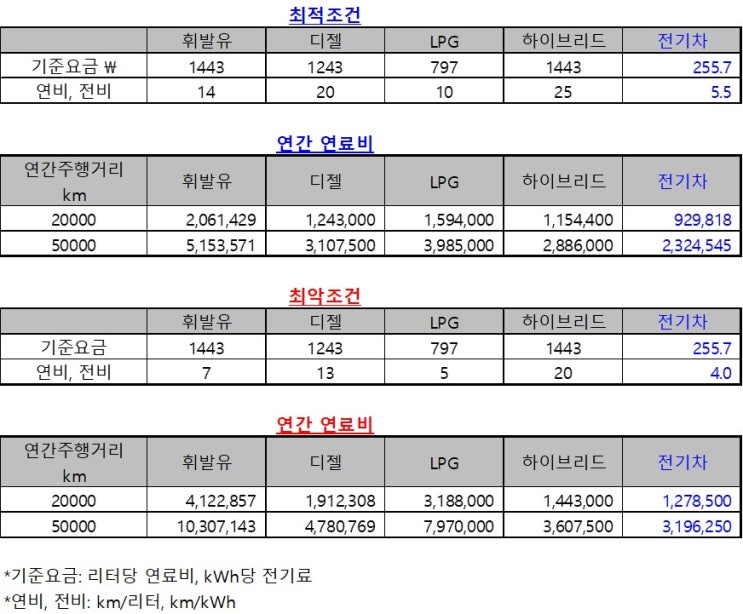 전기차 혜택, 연간유지비, 전기요금, 가솔린/디젤과 비교
