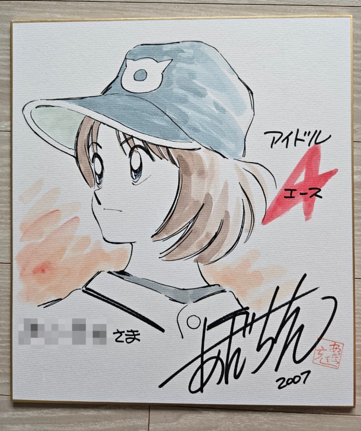 아다치 미츠루 친필 사인 색지
