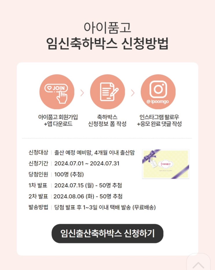 한 달에 100명 당첨되는 #아이품고 #임신축하박스 두 번의 시도 만에 당첨되었다!
