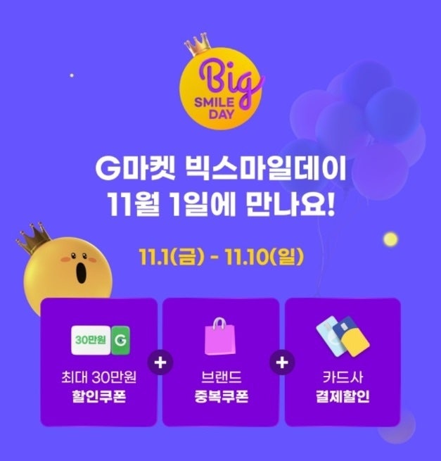 오늘은 11월 4일부터 10일까지 진행되는 G마켓 빅스마일데이 행사 소식을 전해드리려고 하는데요! 다양한 ...