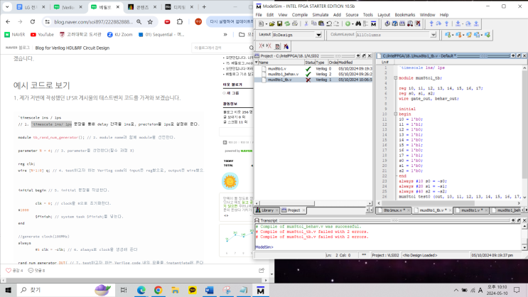테스트벤치 시간 설정 위의 베릴로그 코드에서 timescale은 시간을 설정하는 부분으로 `timescale { de...