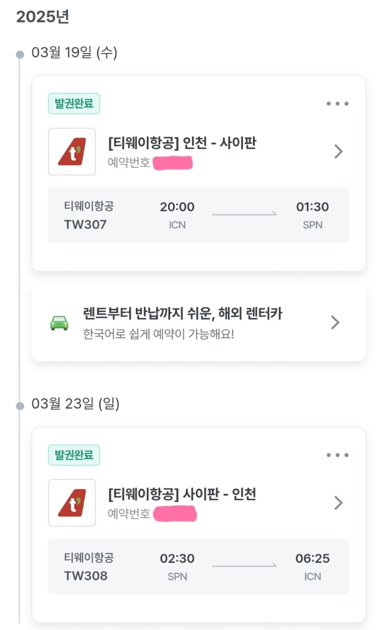 2021년 신혼 여행으로 다녀 온 후 4년만에 사이판행 티켓을 스카이스캐너를 통해 알아봤다. 최저가를 확인...