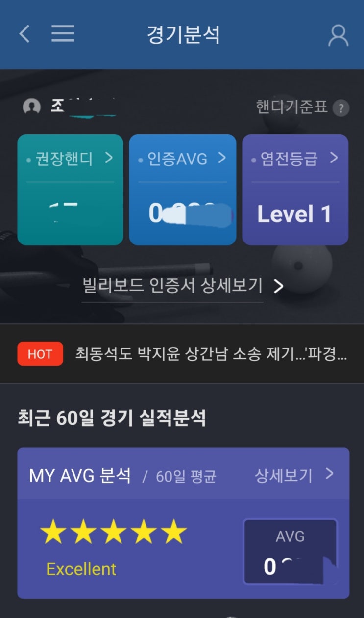 빌리보드 앱에 보면 권장핸디가 있다. 90일 동안 30게임 넘게 한 사람들을 대상으로 앱이 권장하는 핸디다....