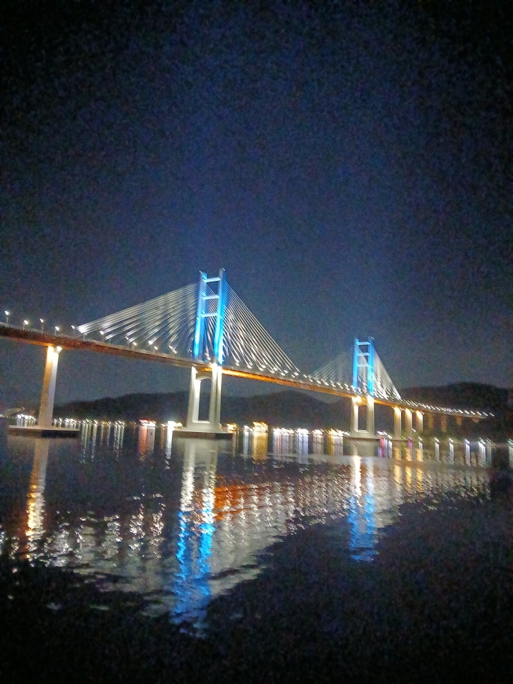 어둠이 내리고 있는 밤하늘 태양이 잠들고 달이 기지개를 켜는 밤하늘 흰구름은 어느새 먹구름처럼 보라색...