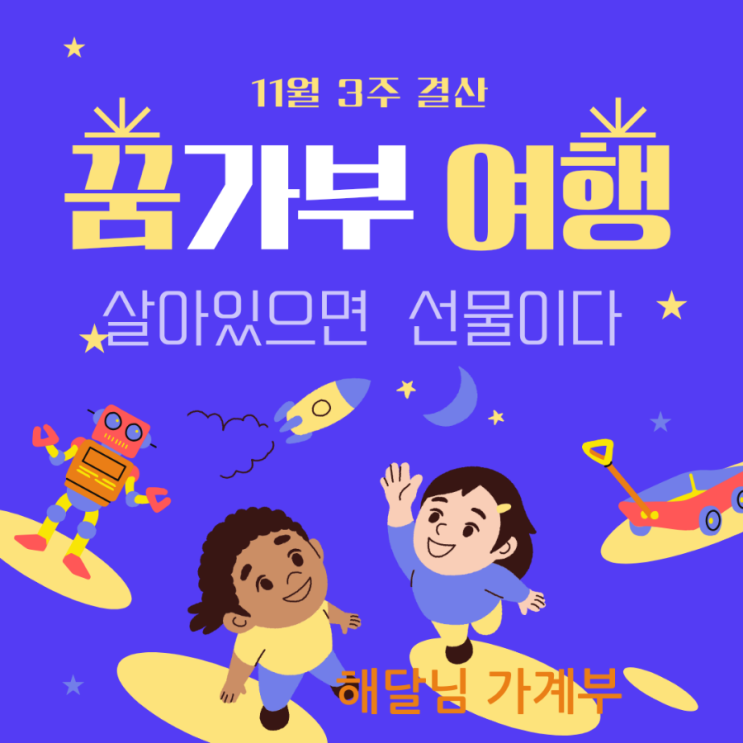 안녕하세요 해 달님입니다 꿈꾸는 가계부 여행 11월 3주 11/11~11/17일 기록입니다 "살아있으면 선물...