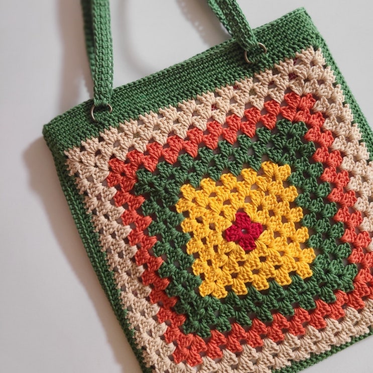 [코바늘 한땀한땀..78] 그래니스퀘어 모티브 백 크기 : 19*20cm 실 : 코스모스 면사 그래니스퀘어 모티브로...