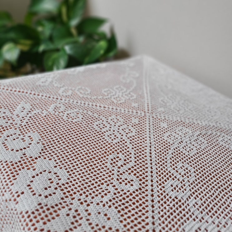 [코바늘 한땀한땀..75] 모눈뜨기 테이블 매트 크기 : 57 * 57cm 실 : 레이스사 화이트 모눈뜨기도 원형 도...