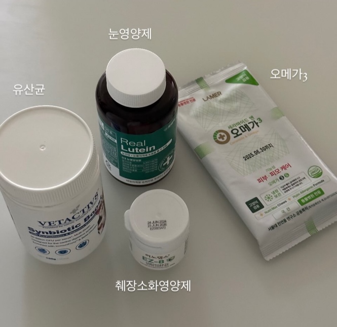 유산균 : 벳엑티브8 산양유 유산균 먹이다가 가루형태로 변경해봄 오메가 : 세라마이드앤 이것도 간식 개념...