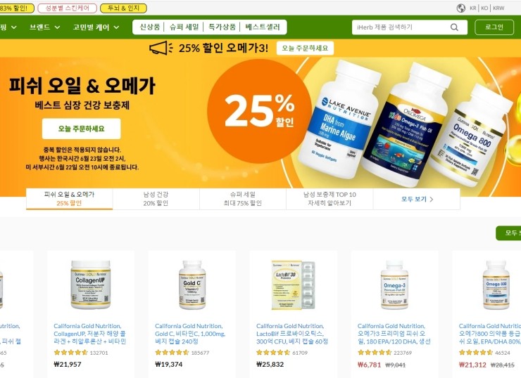 [아이허브]7월 할인코드 보충제20% 20SUPP