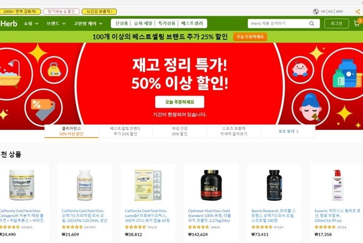 아이허브의 10월 마지막 프로모션은 할인코드 없이 인기브랜드 25% 할인, 최대 50% 특가세일 입니다. 페이...