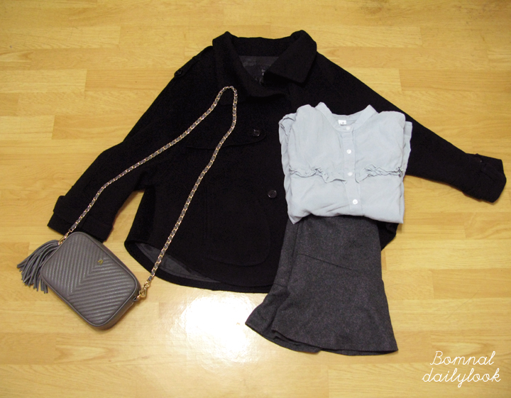 [봄날스타일] 170324 데일리룩 - 네이비 자켓, 프릴카라블라우스, 네이비 뒤트임니트, 앨리스마샤 샐리백
