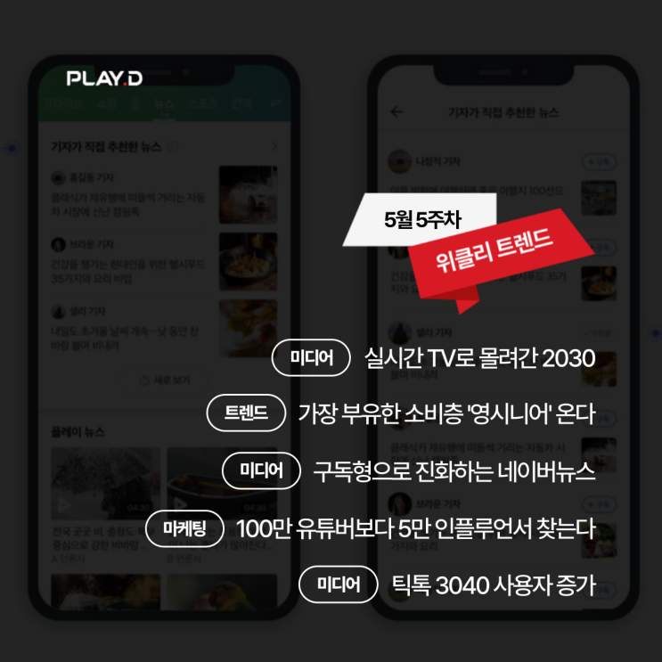 [플디트렌드] 5월 5주차 마케팅 트렌드 뉴스 | 2030세대 TV, 영시니어, 기사홈, 나노 인플루언서, 틱톡 3040