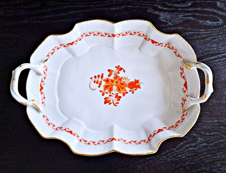 유럽 명품 빈티지 도자기, 마이센 - 인디쉬 오렌지 양손 트레이