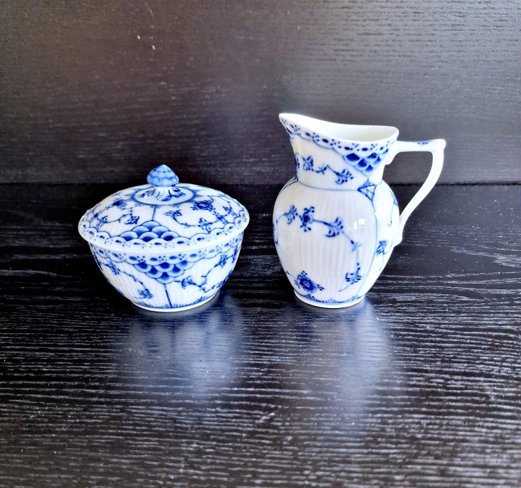 (완료)유럽 명품 빈티지 도자기, 로얄코펜하겐 - 하프레이스 슈거볼#657 + 크리머#522